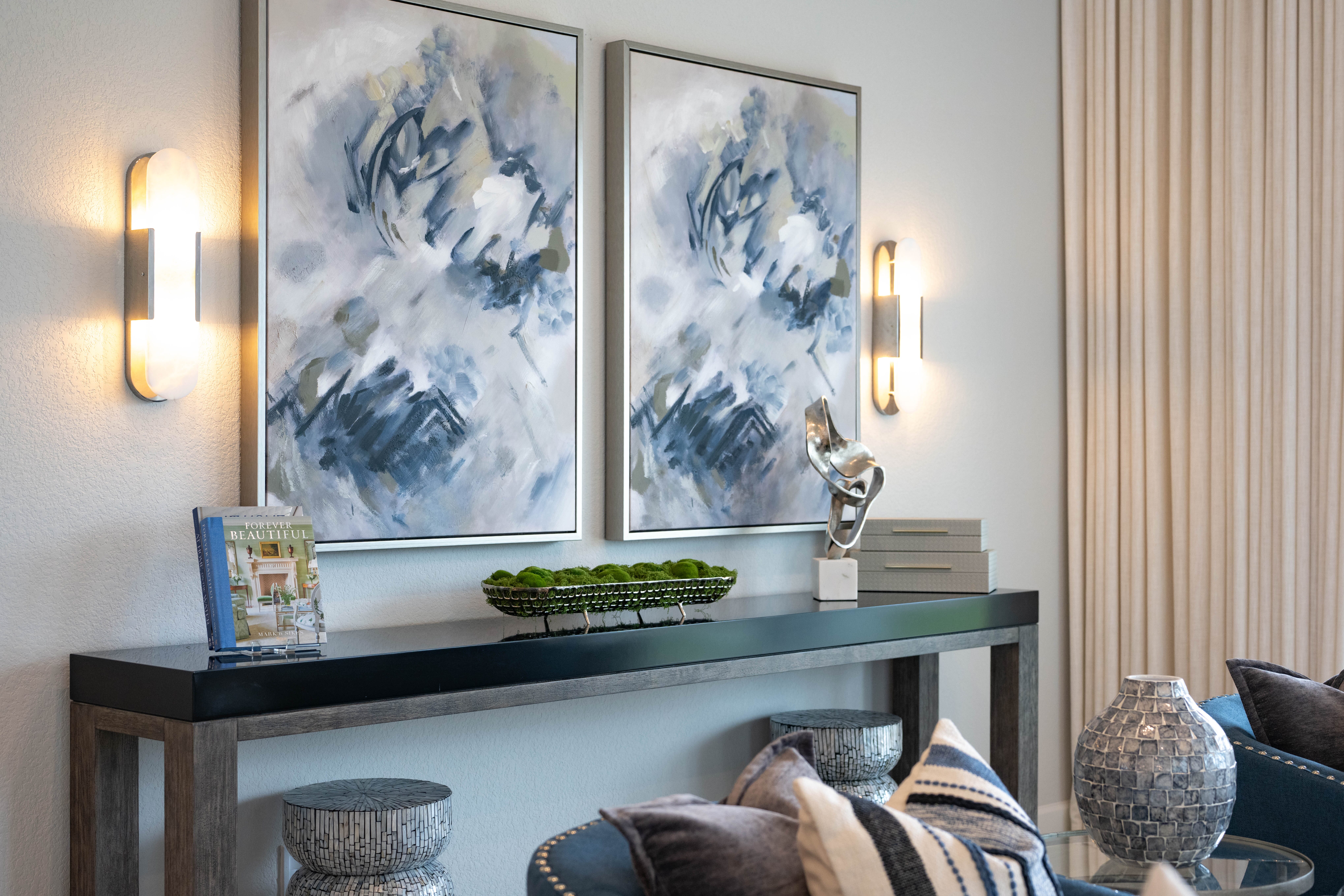We used a layered mix of textures and tones — plush upholstery, glass and metallic accents, and soft drapery — to create visual depth without visual clutter. Every choice, from the statement artwork to the tailored seating arrangement, was made to keep the space airy, balanced, and inviting.